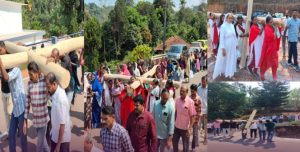 മാനന്തവാടി മുതിരേരി ചെറുപുഷ്പ ദേവാലയത്തിന്റെ ആഭിമുഖ്യത്തിൽ നടന്ന കുരിശുവഴിയിലാണ് ഭീമൻ കുരിശുകളുമായി വിശ്വാസികൾ മലകയറിയത്. പുരുഷന്മാരുടെ നേതൃത്വത്തിൽ 350 കിലോ ഭാരമുള്ള ഭീമൻ കുരിശ് ചുമന്നപ്പോൾ, സ്ത്രീകളുടെ നേതൃത്വത്തിൽ 200 കിലോ ഭാരമുള്ള മറ്റൊരു