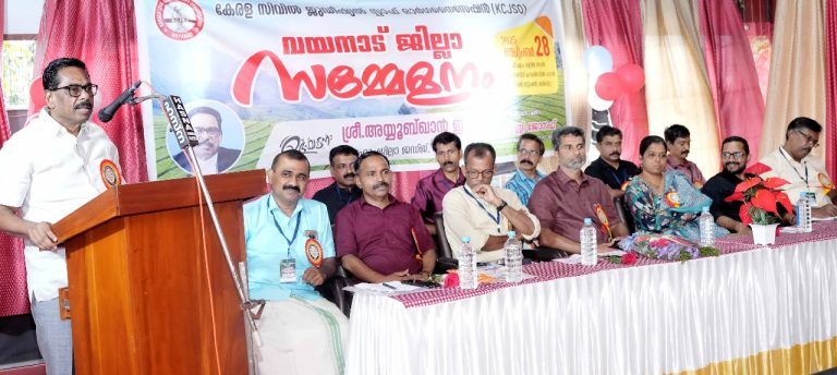 കൽപ്പറ്റ:വയനാട് ജില്ലയിൽ വർധിച്ചു വരുന്ന സാമ്പത്തിക കുറ്റങ്ങൾ കൈകാര്യം ചെയുന്നതിനായി ബഡ്സ് കോടതിയും, ലഹരി, മയക്കുമരുന്ന് കേസുകൾ കൈകാര്യം ചെയുന്നതിനായി NDPS കോടതിയും, വനം – വന്യജീവി കേസുകൾ കൈകാര്യംചെയുന്നതിനായി ഫോറസ്റ്റ് ട്രിബൂണലും അനുവദിക്കണം എന്നും, ജില്ല അനുഭവിക്കുന്ന യാത്ര ദുരിതതിന്ന് പരിഹാരം ആയി ചുരം ബദൽ പാത അനുവദിക്കണം എന്നും കേരള സിവിൽ ജുഡീഷ്യൽ സ്റ്റാഫ് ഓർഗനൈസേഷൻ (KCJSO) വയനാട് ജില്ലാ സമ്മേളനം ആവശ്യപെട്ടു.സമ്മേളനം വയനാട് ജില്ലാ ജഡ്ജ് അയ്യൂബ്ഖാൻ ഉദ്ഘാടനം ചെയ്തു. ജില്ലാ സെക്രട്ടറി സുധീർകുമാർ സ്വാഗതവും, ജില്ല പ്രസിഡണ്ട് സജു ഫിലിപ്പ് അധ്യക്ഷത വഹിച്ചു.സംസ്ഥാന വൈസ് പ്രസിഡണ്ട് സണ്ണി ജോസഫ് മുഖ്യപ്രഭാഷണം നടത്തി. ജില്ലാ കോടതി ശിരസ്തദാർ കെ.ലേഖ, സി.കെ ബിജു, സുജിത് കൃഷ്ണൻ, ഉണ്ണികൃഷ്ണൻ, സുരേന്ദ്ര ബാബു, സുനിൽ ബാബു, സുനിൽ സെബാസ്റ്റ്യൻ, പി. കെ. രാജേഷ്, കെ കെ ഹമീദ്, ഗിരീഷ് എ.കെ, ജിഗിൽ പി.കെ എന്നിവർ സംസാരിച്ചു, സമ്മേളനത്തിൽ വിരമിച്ച ജീവനക്കാരെയും ദേശീയ സിവിൽ സർവീസ് കായികമേള മെഡൽ ജേതാക്കളെയും ആദരിച്ചു.സമ്മേളനത്തിന്റെ ഭാഗമായി കോടതി ജീവനക്കാരുടെ വിവിധ കലാപരിപാടികൾ നടന്നു. പുതിയ ഭാരവാഹികൾ ആയി സജു ഫിലിപ്പ്(ജില്ലാ പ്രസിഡന്റ്), സുധീർ കുമാർ കെ(ജില്ലാ സെക്രട്ടറി),ഷെറിൻ സൈമൺ(ട്രഷറർ), വൈസ് പ്രസിഡന്റ്മാർ: കെ.കെ. ഹമീദ്, ജിഗിൽ പി. കെ, പ്രേമുഖ പി. നായർ, ജോയിന്റ് സെക്രട്ടറിമാർ: ശ്രീരാമ കൃഷ്ണൻ കെ, സാബു സെബാസ്റ്റ്യൻ,ലക്ഷ്മണൻ എം.കെ., സംസ്ഥാന കൗൺസിൽ സണ്ണി ജോസഫ്, സുജിത് കൃഷ്ണൻ എന്നിവരെയും, 23 അംഗ ജില്ലാ എക്സിക്യൂട്ടീവിനെയും തെരഞ്ഞെടുത്തു.