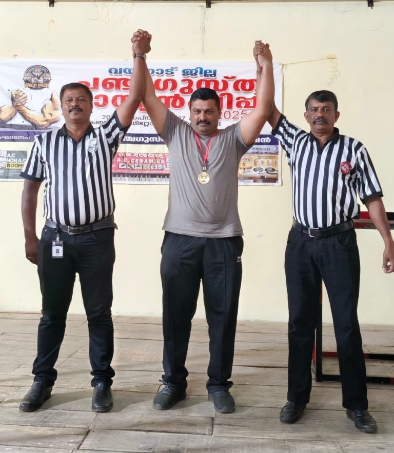 പുൽപ്പള്ളി: പുൽപ്പള്ളി കബനി ഓഡിറ്റോറിയത്തിൽ വച്ചു നടന്ന ജില്ലാതല പഞ്ചഗുസ്തി ചാമ്പ്യൻഷിപ്പിൽ മാസ്റ്റേഴ്സ് വിഭാഗത്തിൽ (ഹെവി വെയ്റ്റ് ) ഒന്നാം സ്ഥാനം പോലീസുകാരന്. വൈത്തിരി സ്റ്റേഷനിലെ സിവിൽ പോലീസ് ഓഫീസർ എം.ഖാലിദ് ആണ് ഒന്നാമതെത്തി ജില്ലാ പോലീസിന്റെ അഭിമാനമായത്. ഈ വർഷം ഡിസംബറിൽ ജില്ലയിൽ നടക്കാനിരിക്കുന്ന സംസ്ഥാന തല മത്സരത്തിലേക്കും തിരഞ്ഞെടുക്കപ്പെട്ടു.
