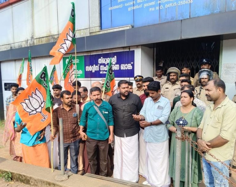 കാട്ടിക്കുളം: തിരുനെല്ലി ദേവസ്വത്തിൻ്റെ സ്ഥിര നിക്ഷേപം കോടതിവിധിയുണ്ടായിട്ട് പോലും തിരികെ നൽകാത്ത തിരുനെല്ലി സഹകരണ ബാങ്കിൻ്റെ നിലപാടിൽ പ്രതിഷേധിച്ച് ബി.ജെ.പി തിരുനെല്ലി പഞ്ചായത്ത് കമ്മിറ്റിയുടെ ആഭിമുഖ്യത്തിൽ ബാങ്കിലേക്ക് പ്രതിഷേധ മാർച്ച് സംഘടിപ്പിച്ചു.ബാങ്കിൻ്റെ ഭരണ സമിതിയുടേയും ഡയറക്ടർമാരായ സി.പി.എം നേതാക്കളുടേയും ധാർഷ്ട്യം അവസാനിപ്പിച്ച് എത്രയും പെട്ടന്ന് സ്ഥിര നിക്ഷേപം ദേവസ്വത്തിന് തിരികെ നൽകണമെന്ന് പരിപാടി ഉദ്ഘാടനം ചെയ്തു കൊണ്ട് ബി.ജെ.പി ജില്ല ഉപാധ്യക്ഷൻ കെ.മോഹൻദാസ് പറഞ്ഞു. ഭക്തർ കാണിക്കയായി നൽകിയ പണം കൊള്ളയടിക്കാൻ ആരെയും അനുവദിക്കില്ലെന്നും നിക്ഷേപം തിരികെ നൽകിയില്ലെങ്കിൽ തുടർ പ്രക്ഷോഭങ്ങൾക്ക് നേതൃത്വം നൽകുമെന്നും അദ്ധേഹം കൂട്ടിച്ചേർത്തു. പ്രകാശൻ കെ.കെ അധ്യക്ഷത വഹിച്ചു.യുവമോർച്ച സംസ്ഥാന ഉപാധ്യക്ഷൻ സി.അഖിൽ പ്രേം മുഖ്യപ്രഭാഷണം നടത്തി.വിജിഷ സജീവൻ, അഖിൽ കേളോത്ത്, അരുൺ രമേശ്, രൂപേഷ് പിലാക്കാവ്, പ്രദീപൻ സി തുടങ്ങിയവർ സംസാരിച്ചു.