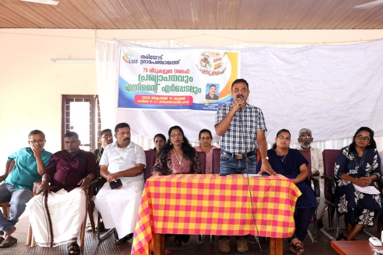 കാവുംമന്ദം: സ്വന്തമായി ഒരു വീട് എന്ന ഓരോ കുടുംബങ്ങളുടെയും ഏറ്റവും വലിയ സ്വപ്നം 75 അർഹരായ കുടുംബങ്ങൾക്ക് കൂടി യാഥാർത്ഥ്യമാക്കി തരിയോട് ഗ്രാമപഞ്ചായത്ത്. സമ്പൂർണ്ണ ഭവനം ലക്ഷ്യമിട്ട് ജനറൽ വിഭാഗത്തിൽപ്പെട്ട 62 കുടുംബങ്ങൾക്കും എസ് ടി വിഭാഗത്തിൽപ്പെട്ട 13 കുടുംബങ്ങൾക്കുമാണ് തരിയോട് ഗ്രാമപഞ്ചായത്തിൽ നിന്നും പുതുതായി വീട് അനുവദിച്ചത്. ലൈഫ് ഭവന പദ്ധതിയിൽ ഉൾപ്പെടുത്തി അനുവദിക്കുന്ന 75 വീടുകളുടെ പ്രഖ്യാപനവും ഗുണഭോക്താക്കളിൽ നിന്നും കരാർ രേഖകൾ ഏറ്റുവാങ്ങലും തരിയോട് ഗ്രാമപഞ്ചായത്ത് പ്രസിഡണ്ട് ഷമീം പാറക്കണ്ടി നിർവഹിച്ചു. വൈസ് പ്രസിഡണ്ട് പുഷ്പ മനോജ് അധ്യക്ഷത വഹിച്ചു. ലൈഫ് മിഷൻ ജില്ലാ കോർഡിനേറ്റർ മാലതി ഓ വി മുഖ്യാതിഥിയായി.