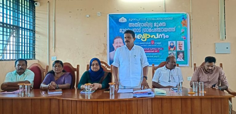 അതി ദാരിദ്ര്യ നിർമ്മാർജ്ജന പ്രഖ്യാപനം നടത്തി മൂപൈനാട് ഗ്രാമപഞ്ചായത്ത്. ഗ്രാമപഞ്ചായത്ത് ഹാളിൽ നടന്ന പരിപാടിയിൽ അതിദാരിദ്ര്യ നിർമ്മാർജ്ജന പ്രഖ്യാപനം ഗ്രാമപഞ്ചായത്ത് പ്രസിഡന്റ് ആർ.ഉണ്ണികൃഷ്ണൻ നിർവഹിച്ചു. രണ്ട് കുടുംബങ്ങൾക്ക് ഭൂമി, മൂന്ന് കുടുംബങ്ങൾക്ക് വീട്, 42 കുടുംബങ്ങൾക്ക് ഭക്ഷണ കിറ്റ് എന്നിവയ്ക്ക് പുറമെ മരുന്ന് ആവശ്യമുള്ള 20 കുടുംബങ്ങൾക്കും പഞ്ചായത്ത് സേവനം നൽകി. ഗ്രാമപഞ്ചായത്ത് വൈസ് പ്രസിഡന്റ് ഷൈബാൻ സലാം അധ്യക്ഷനായ പരിപാടിയിൽ സ്ഥിരം സമിതി അധ്യക്ഷരായ കെ.റഫീഖ്, പി.കെ സാലിം, ഡയാന മച്ചാഡോ അംഗങ്ങളായ വി.എൻ ശശീന്ദ്രൻ, യശോദ, ശശിധരൻ, വി.ഇ.ഒ നൗഫൽ എന്നിവർ പങ്കെടുത്തു.
