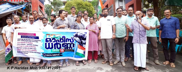 കൽപ്പറ്റ: സർവ്വീസിലുള്ള മുഴുവൻ അധ്യാപകരെയും ടെറ്റ് യോഗ്യതയിൽ നിന്നും ഒഴിവാക്കുക, ടെറ്റ് സുപ്രീം കോടതി വിധിയിൽ സർക്കാർ ഇടപെടൽ നടത്തുക, ഭിന്നശേഷി പ്രശ്നം പരിഹരിച്ച് എല്ലാ അധ്യാപകർക്കും നിയമനാംഗീകാരം നൽകുക, ശമ്പളപരിഷ്കരണ നടപടികൾ ഉടൻ ആരംഭിക്കുക, ഡി എ കുടിശ്ശിക അനുവദിക്കുക, എല്ലാ പ്രീ-പ്രൈമറി അധ്യാപികമാർക്കും ശമ്പളസ്കെയിൽ അനുവദിക്കുക, ഖാദർ കമ്മിറ്റി റിപ്പോർട്ട് പിൻവലിക്കുക, 1:250 അനുപാതത്തിൽ സ്പെഷ്യലിസ്റ്റ് – കായികാധ്യാപകരെ നിയമിക്കുക എന്നീ ആവശ്യങ്ങളുന്നയിച്ചു കൊണ്ട് കെ പി എസ് ടി എ വയനാട് ജില്ലാ കമ്മിറ്റി ഡി ഡി ഇ ഓഫീസ് മാർച്ച് നടത്തി. ആറാം പ്രവൃത്തിദിനത്തിലെ ക്ലസ്റ്റർ പരിശീലനം ബഹിഷ്കരിച്ച് നടത്തിയ മാർച്ച് സംസ്ഥാന നിർവ്വാഹക സമിതി അംഗം ടി എൻ സജിൻ ഉദ്ഘാടനം ചെയ്തു. ജില്ലാ പ്രസിഡൻ്റ് ഷാജു ജോൺ അധ്യക്ഷത വഹിച്ചു. ജില്ലാ സെക്രട്ടറി ടി എം അനൂപ്, ട്രഷറർ സി കെ സേതു, ഷേർളി സെബാസ്റ്റ്യൻ, കെ കെ പ്രേമചന്ദ്രൻ, ഷിജു കുടിലിൽ, ശ്രീജേഷ് ബി നായർ, കെ ജി ബിജു, കെ സി അഭിലാഷ്, ടി എം വിൽസൺ, കെ എസ് അനൂപ് കുമാർ, ജോസഫ് ജോഷി, കെ ഉണ്ണികൃഷ്ണൻ, നവീൻ പോൾസൺ എന്നിവർ പ്രസംഗിച്ചു.
