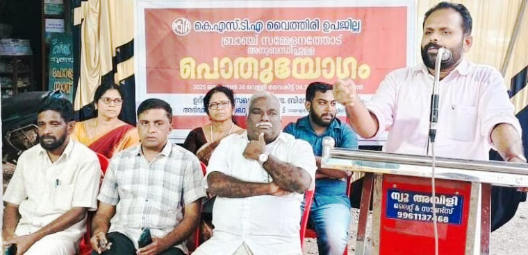 വൈത്തിരി: കേരള സ്റ്റേറ്റ് സ്കൂള് ടീച്ചേഴ്സ് അസോസിയേഷന് (കെഎസ്ടിഎ) ബ്രാഞ്ച് സമ്മേളനത്തിന്റെ ഭാഗമായി ടൗണില് പൊതുയോഗം നടത്തി. സംസ്ഥാന സെക്രട്ടറി പി.ജെ. ബിനേഷ് ഉദ്ഘാടനം ചെയ്തു. പികെഎസ് ജില്ലാ വൈസ് പ്രസിഡന്റ് എസ്. ചിത്രകുമാര് അധ്യക്ഷത വഹിച്ചു. പി.കെ. അസീസ്, വിശാല, ശാന്തി, എത്സി ജോര്ജ്, എം. രമേഷ്, കെ.പി. രാമചന്ദ്രന് എന്നിവര് പ്രസംഗിച്ചു. കെഎസ്ടിഎ ജില്ലാ കമ്മിറ്റി അംഗം ടി.കെ. അബ്ബാസ് സ്വാഗതവും ഉപജില്ലാ ട്രഷറര് ശരത്ത് റാം നന്ദിയും പറഞ്ഞു.