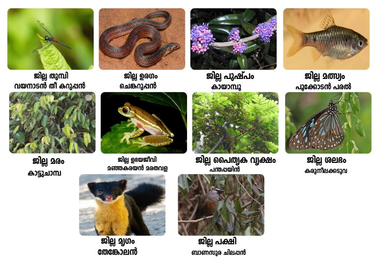 ജില്ലയുടെ പക്ഷി, വൃക്ഷം, മൃഗം, മത്സ്യം, ചിത്ര ശലഭം, പുഷ്പം, തുമ്പി, പൈതൃക മരം, ഉരഗം,തവള എന്നിവ പ്രഖ്യാപിച്ചു