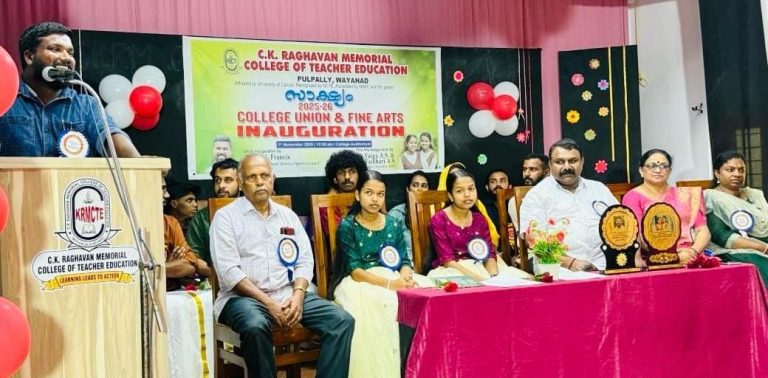 പുൽപ്പള്ളി സികെ രാഘവൻ മെമ്മോറിയൽ കോളേജ് ഓഫ് ടീച്ചർ എഡ്യൂക്കേഷനിൽ സാക്ഷ്യം 2025 – 26 കോളേജ് യൂണിയനും ഫൈൻ ആർട്സ് ക്ലബ്ബും ഉദ്ഘാടനം ചെയ്തു. കോളേജ് യൂണിയന്റെ ഉദ്ഘാടനം യുവജന കമ്മീഷൻ ജില്ലാകോർഡിനേറ്ററും വയനാട് ജില്ല സ്പോർട്സ് കൗൺസിൽ പ്രസിഡണ്ടുമായ കെ എം ഫ്രാൻസിസ് നിർവഹിച്ചു.കോളേജ് യൂണിയൻ അംഗങ്ങളുടെ സത്യപ്രതിജ്ഞയും ഉണ്ടായിരുന്നു. ഫൈൻ ആർട്സ് ക്ലബ്ബിന്റെ ഉദ്ഘാടനം കവയത്രികളും ജയശ്രീ ഹയർ സെക്കൻഡറി സ്കൂൾ പത്താം ക്ലാസ് വിദ്യാർത്ഥിനികളുമായ എ എസ് വൈഗയും എ എസ് വൈഖരിയും ചേർന്ന് നിർവഹിച്ചു.