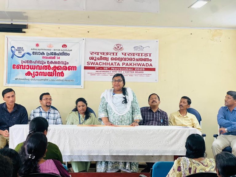 ആരോഗ്യ വകുപ്പും ആരോഗ്യ കേരളവും സംയുക്തമായി ചുണ്ടേല് കാപ്പി ഗവേഷണ കേന്ദ്രത്തില് ലോക പ്രമേഹ ദിനത്തോടനുബന്ധിച്ച് രക്ത പരിശോധന ക്യാമ്പ് സംഘടിപ്പിച്ചു. ക്യാമ്പ് ദേശീയ ആരോഗ്യ ദൗത്യം ജില്ലാ പ്രോഗ്രാം മാനേജര് ഡോ സമീഹ സൈതലവി ഉദ്ഘാടനം ചെയ്തു. പ്രമേഹ പരിശോധന, ബോധവത്കരണ ക്ലാസ്, പ്രമേഹ രോഗികള്ക്കുള്ള ഡയറ്റ് പ്ലാന് എന്നിവ സംഘടിപ്പിച്ചു. ജില്ലാ ആര്ദ്രം മിഷന് നോഡല് ഓഫീസര് ഡോ പി.എസ് സുഷമ അധ്യക്ഷയായപരിപാടിയില് ഡെപ്യൂട്ടി ജില്ലാ എജ്യൂക്കേഷന് മീഡിയ ഓഫീസര് പി.എം ഫസല്, കാപ്പി ഗവേഷണ കേന്ദ്രം ഡെപ്യൂട്ടി ഡയറക്ടര് ഡോ രുദ്ര രാജ് ഗൗഡ, ജൂനിയര് കണ്സള്ട്ടന്റ് ഡോ.കുഞ്ഞിക്കണ്ണന്, ഹെല്ത്ത് ഇന്സ്പെക്ടര് പി. കെ നവാസ്, ജൂനിയര് ഹെല്ത്ത് ഇന്സ്പെക്ടര്മാരായ സുരേഷ് കുമാര്, സുധ, ആരോഗ്യ കേരളം ബി.സി.സി കണ്സള്ട്ടന്റ് നിജില്, ജൂനിയര് പബ്ലിക് ഹെല്ത്ത് നഴ്സ് നദാഷ, പി.നിഖില, കാപ്പി ഗവേഷണ കേന്ദ്രം ഉദ്യോഗസ്ഥര്, പ്ലാന്റേഷന് ജീവനക്കാര്, ആരോഗ്യ പ്രവര്ത്തകര് എന്നിവര് പങ്കെടുത്തു.