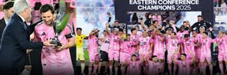 എംഎൽഎസ് ഈസ്റ്റേൺ കോൺഫറൻസ് കിരീടത്തിൽ മുത്തമിട്ട് ഇന്റർ മയാമി. ഫൈനലിൽ ന്യൂയോർക്ക് സിറ്റി എഫ്സിയെ പരാജയപ്പെടുത്തിയാണ് സൂപ്പർ താരം ലയണൽ മെസിയും സംഘവും ചാമ്പ്യന്മാരായത്. ഒന്നിനെതിരെ അഞ്ച് ഗോളുകളുടെ തകർപ്പൻ വിജയമാണ് മയാമി സ്വന്തമാക്കിയത്.