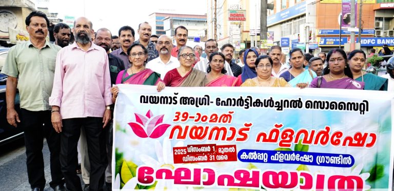 ഫ്ളവർ ഷോക്ക് തുടക്കം കുറിച്ച് കൽപ്പറ്റ നഗരത്തിൽ വിളംബര ഘോഷയാത്രയും നടത്തി.