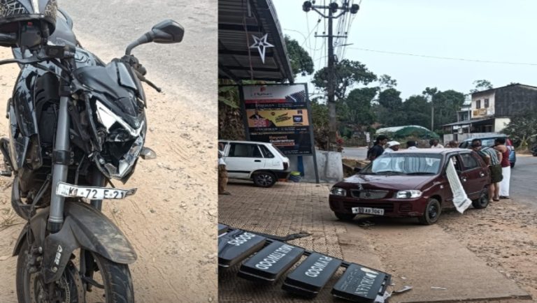ബൈക്കും കാറും കൂട്ടി ഇടിച്ച് ബൈക്ക് യാത്രകാരന് പരിക്ക്