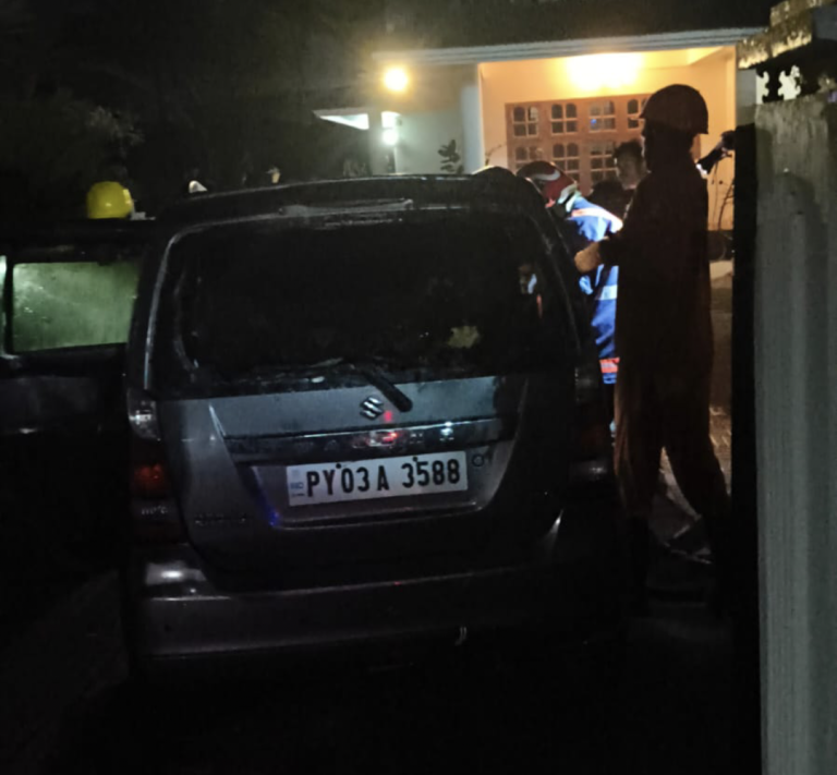 ഭർത്താവ് മരണപ്പെട്ടു ഭാര്യക്കും ഒരു കുട്ടിക്കും പൊള്ളലേറ്റ നിലയിൽ ഹോസ്പിറ്റലിലേക്ക് മാറ്റി. PY-03-A-3588 എന്ന കാർ ആണ് കത്തിയത്. 3പേര് ആയിരുന്നു കാറിൽ ഉണ്ടായിരുന്നത് എന്നാണ് നിഗമനം.